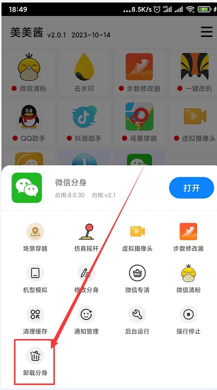老用户需要卸载老版本,全新安装,在安装之前,一定要先删除XClone里面的微信,如下图所示: